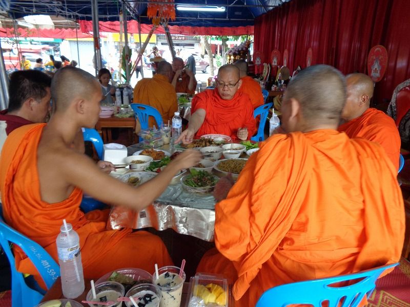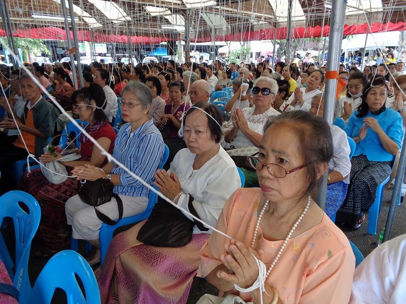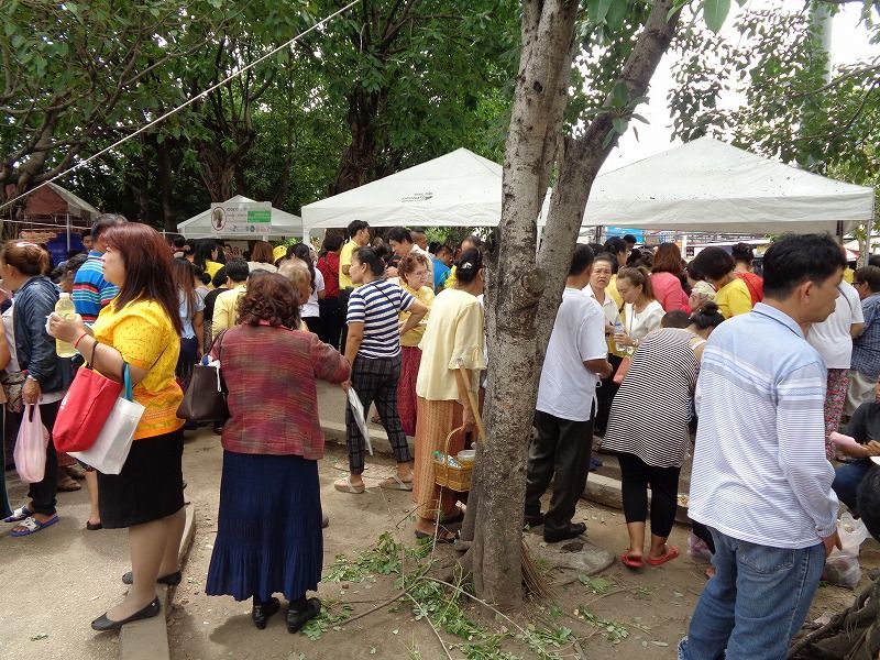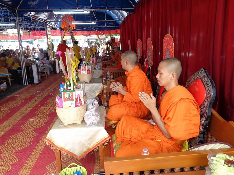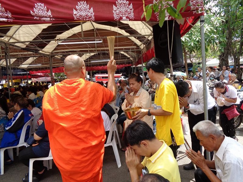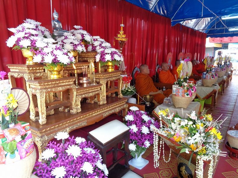 アーサラハブーチャ(三宝節)とは、陰暦8月の満月の日(今年は7月16日)で、釈迦が悟りを開いて、最初の説教を行い、最初の弟子ができた日です。これにより、仏・法・僧の3つ(三宝)が揃った日でもあります。人々はこの日を祝い、寺院にお参りに行きます。この日(16日)と翌日の『カオパンサー』(入安居)〈17日〉は、官公庁は休みで、飲酒禁止になります。