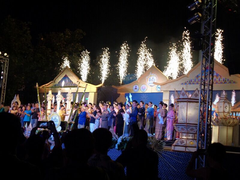 ステージでは、花火が打ち上げられ、『ローイクラトン祭り』の開幕が告げられました。