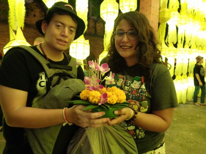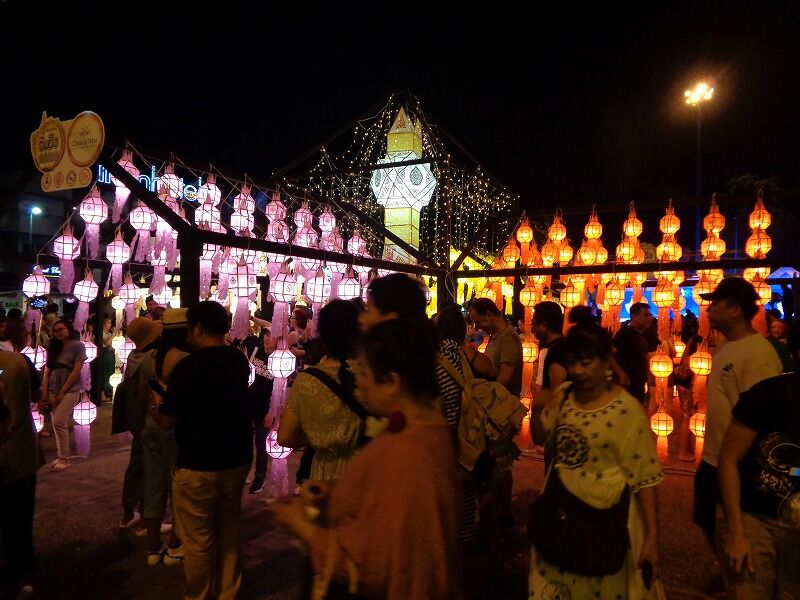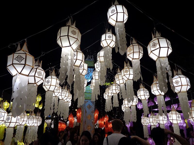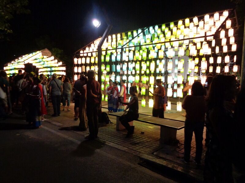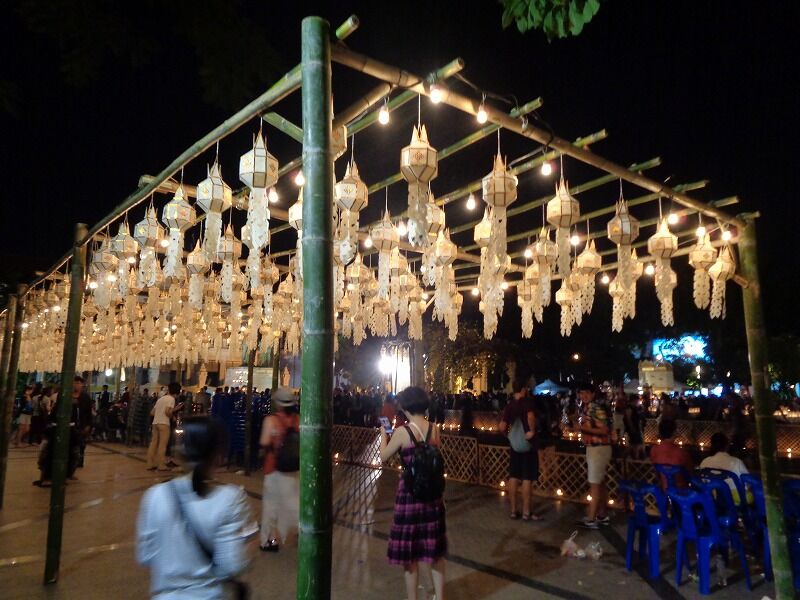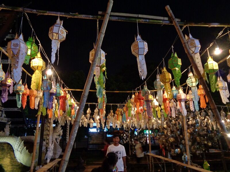 タイでは陰暦12月の満月(今年は11月11日)に『ローイクラトン祭り』が行なわれ、川の恵みをもたらす女神に感謝と謝罪の気持ちを込めて、バナナの茎や葉で作った灯籠(クラトン)を川に流します。チェンマイでは、イーペン祭りと呼ばれ、今年は11月10日から12日までの3日間、様々なイベントが開かれていました。