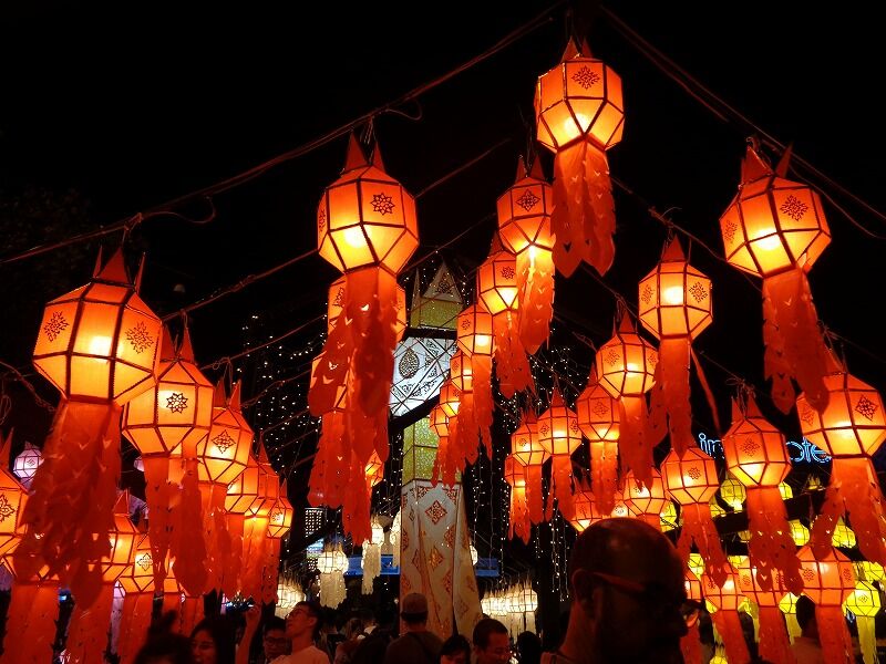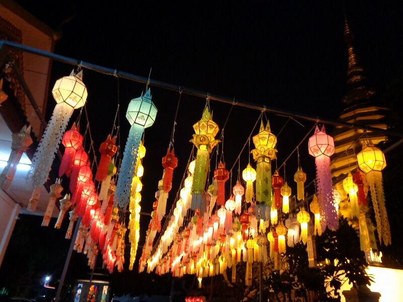タイでは陰暦12月の満月(今年は11月11日)に『ローイクラトン祭り』が行なわれ、川の恵みをもたらす女神に感謝と謝罪の気持ちを込めて、バナナの茎や葉で作った灯籠(クラトン)を川に流します。チェンマイでは、イーペン祭りと呼ばれ、今年は11月10日から12日までの3日間、様々なイベントが盛大に開かれました。