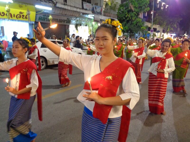 『ローイクラトン祭り』の前夜祭では、3人の王様像広場で800人の踊り子による『ロウソク舞』が披露されました。