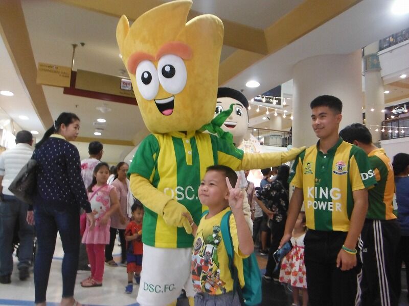 サッカーチームのマスコット人形は子供たちから人気がありました。