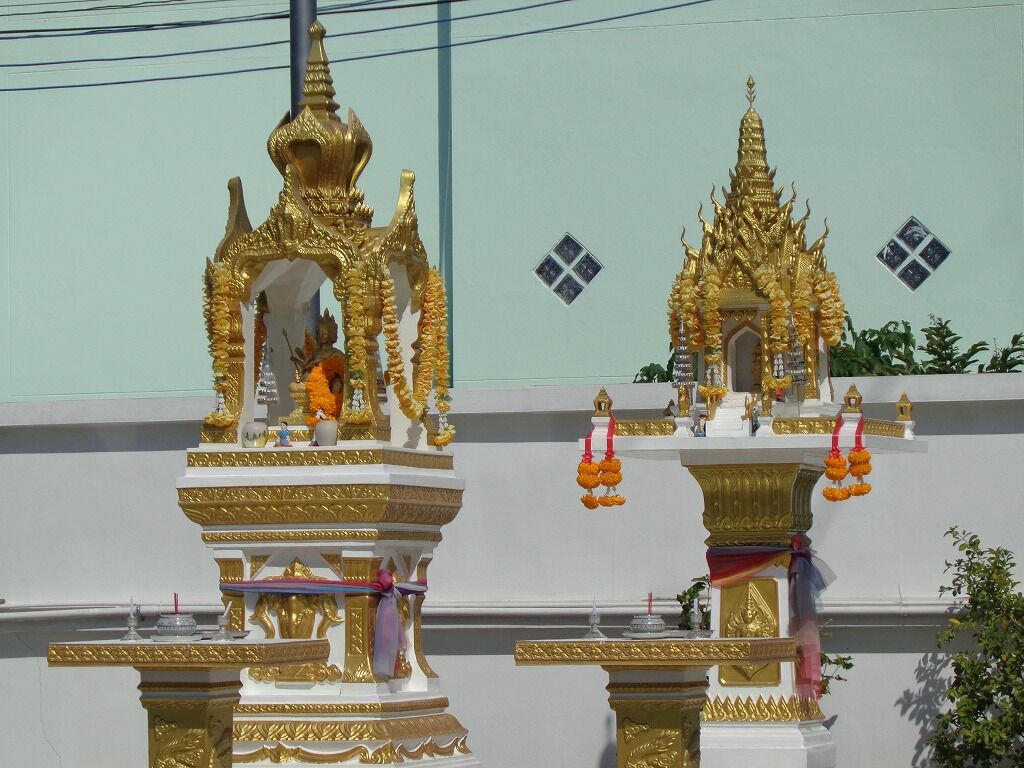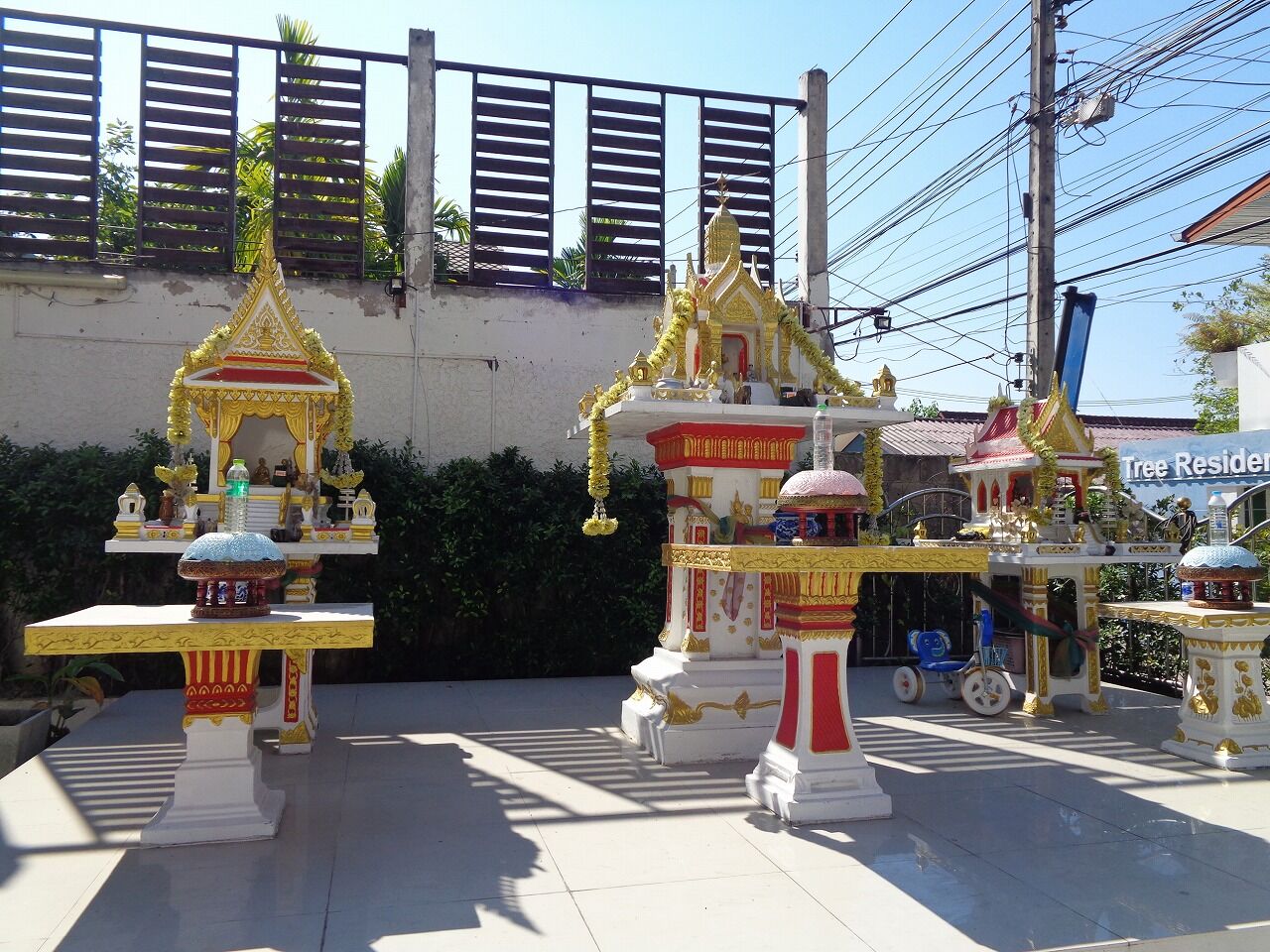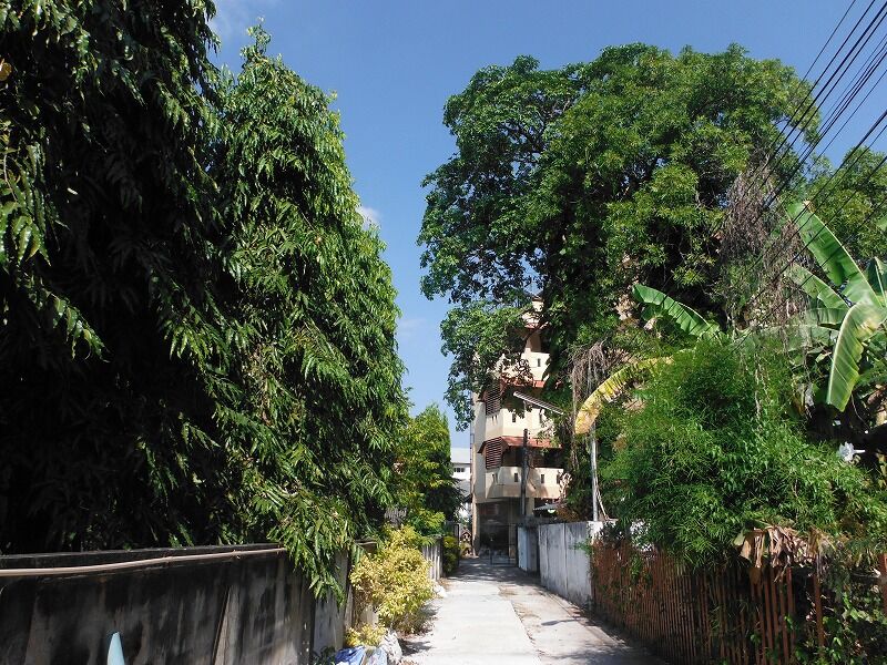 私の住んでいるアパートは、チェンマイの中心街にあるロイクロ通り(旧市街とナイトバザールの間にある通り)を小路に入った所にあります。私のアパート(真ん中)の入り口の両側は、緑豊かな木々が並んでいます。