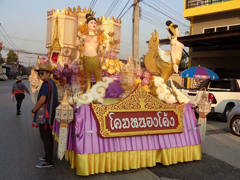 チェンマイの郊外にあるサンカンペーン郡のボーサン村は、美しい傘作りの産地として世界中に知られ、毎年1月の第三金曜日から日曜日まで(今年は17日~19日)の3日間、傘祭りを開催しています。初日(17日)の夜は、このお祭りの最大のイベントである『華麗な電飾傘山車のパレード』が行なわれました。このパレードを見たかったのですが、チェンマイ行きの白いソンテウ(相乗りバス)が夜は通らないので、夕方にはチェンマイに帰りました。