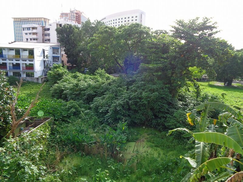 私の住んでいるアパートの東側から撮った写真です。有名なメーピンホテル(真ん中の上)も見えます。