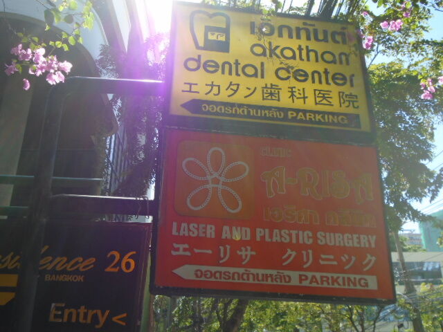 歯科医院やクリニックも日本語でも書かれています。