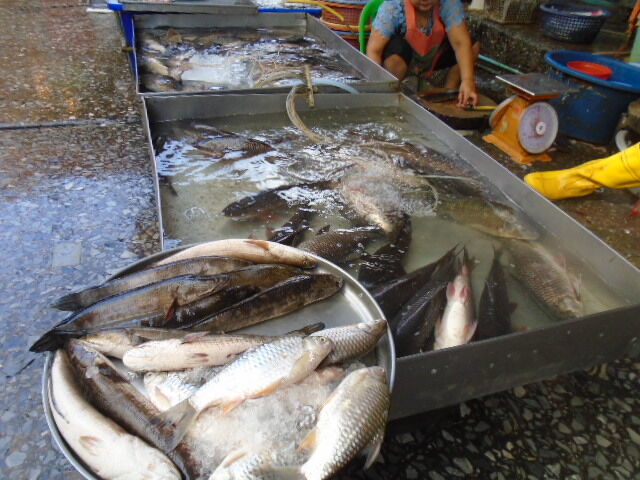 ナマズなども生きたまま売っています。