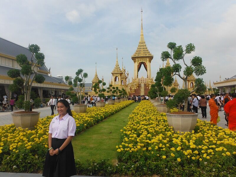 プミポン前国王の火葬施設は王宮前広場に設けられていました。