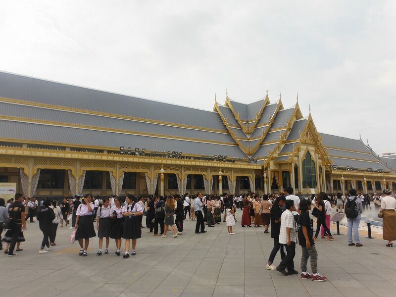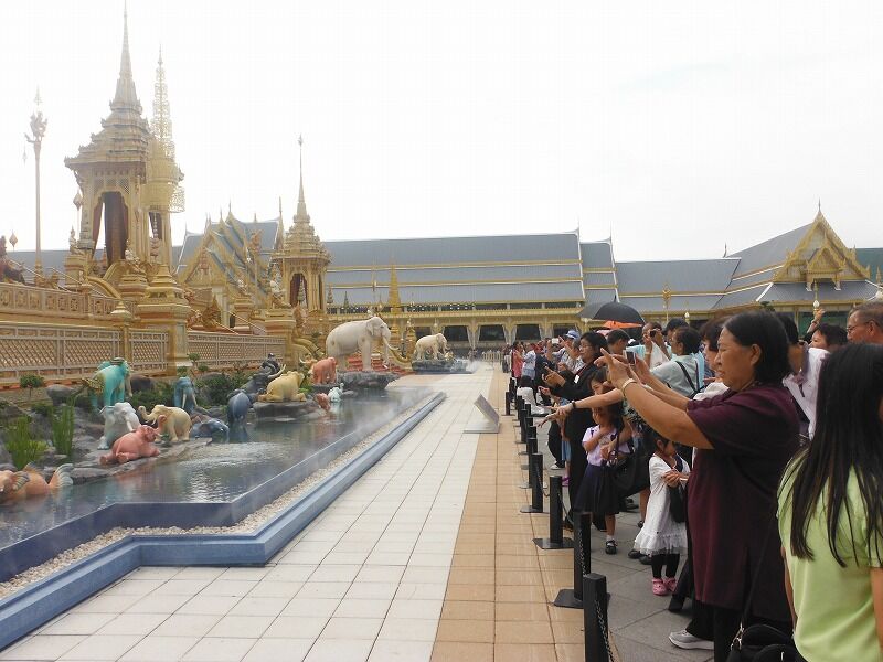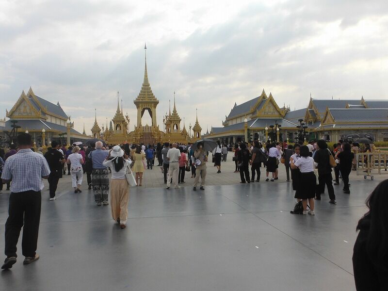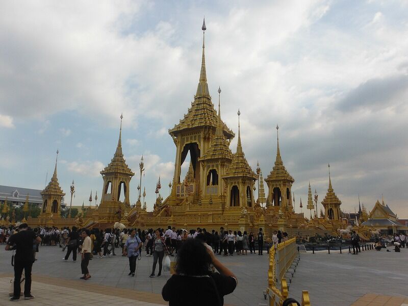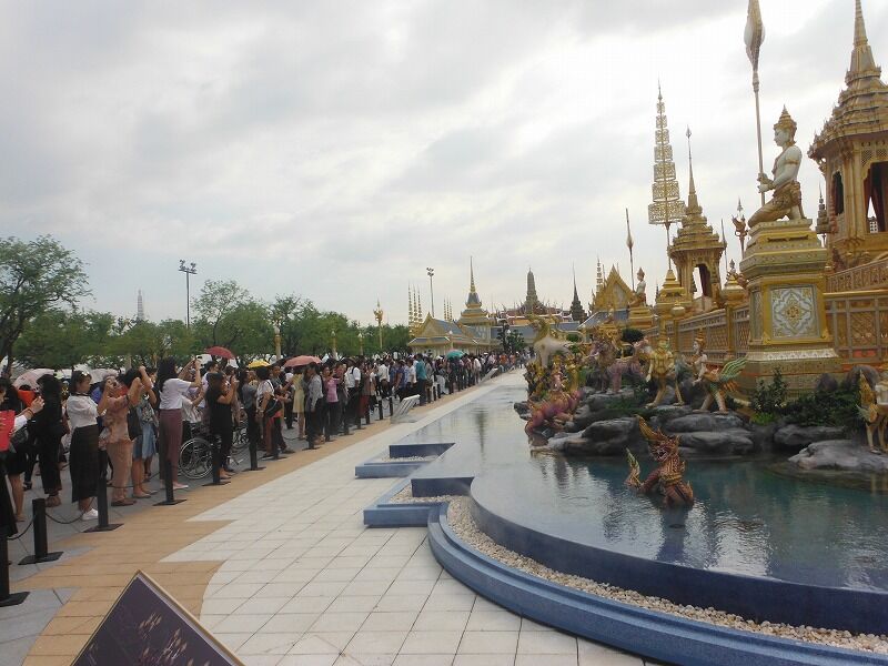 2016年10月13日に逝去され、2017年10月26日に荼毘されたプミポン前国王の火葬施設が11月2日から11月末まで一般公開される予定でしたが、あまりにも入場者が多いので、年末まで延長されました。私はバンコク最終日の3日目(2017年11月24日)の午後から見に行きました。