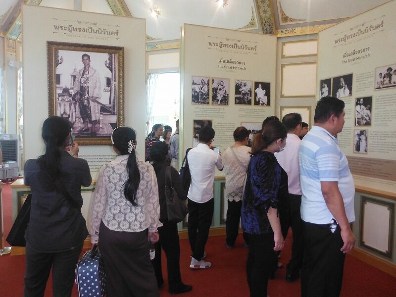 『プミポン前国王の業績を称えるパビリオン』では、大ぜいの人々が見学していました。