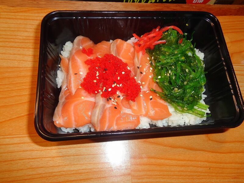 サーモン弁当は85バーツ(約250円)でした。