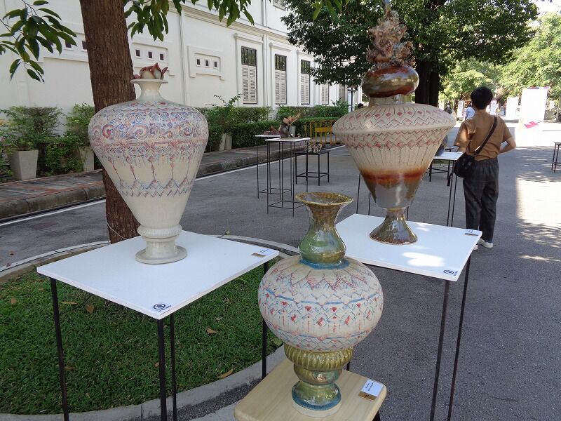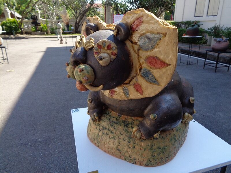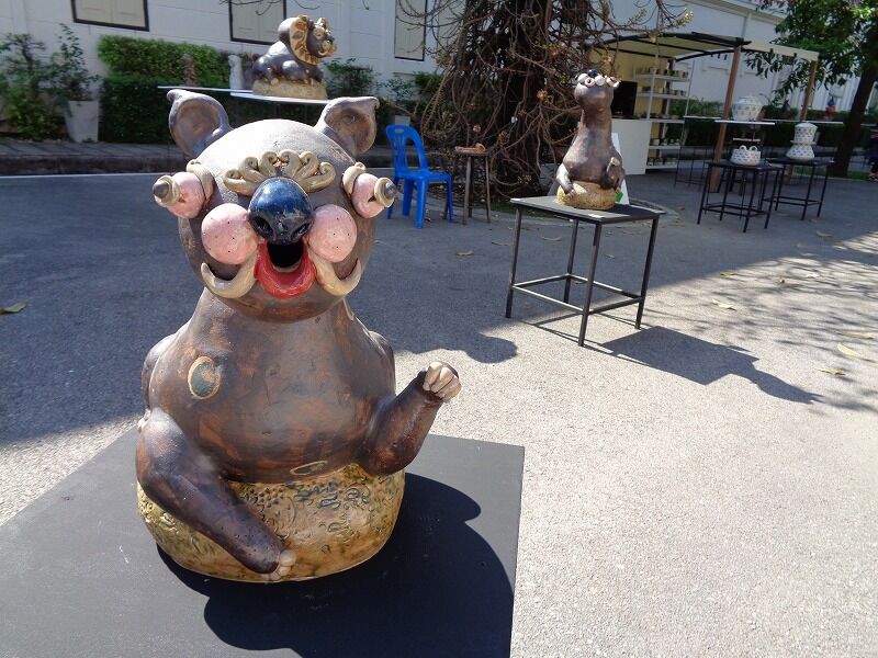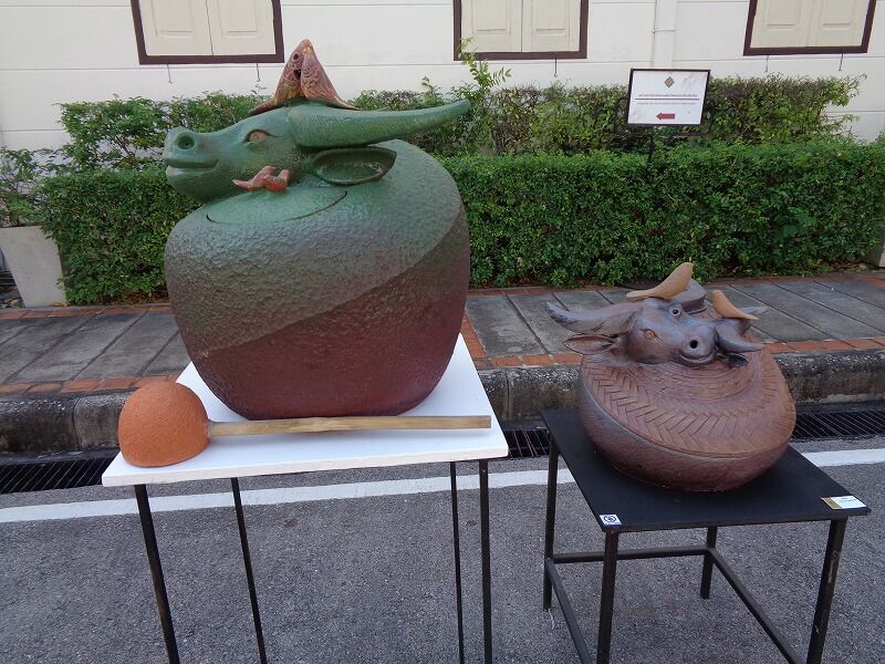 『チェンマイ市芸術&文化センター』の外側では、焼き物が展示されていました。