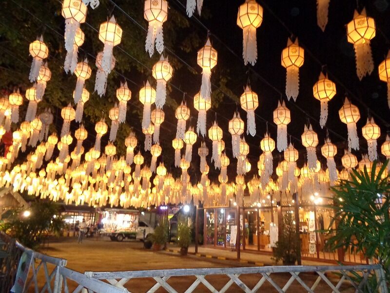 旧市街から東側にある『ピン川』周りには、多数のクラトン(灯篭)の灯りが流れ、幻想的な雰囲気に包まれていました。
