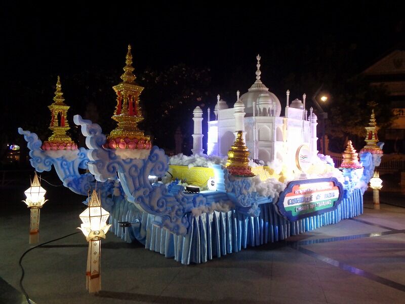 インド領事館の豪華な大燈篭山車が展示されていました。