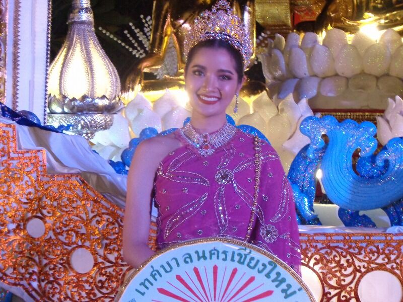 3台目の豪華な大燈篭山車の前では、華麗なチェンマイの伝統舞踊も披露されました。
