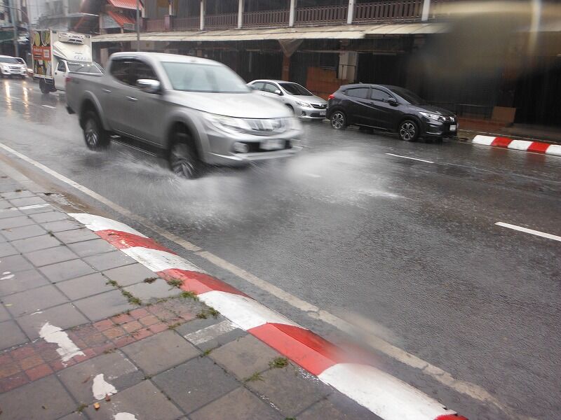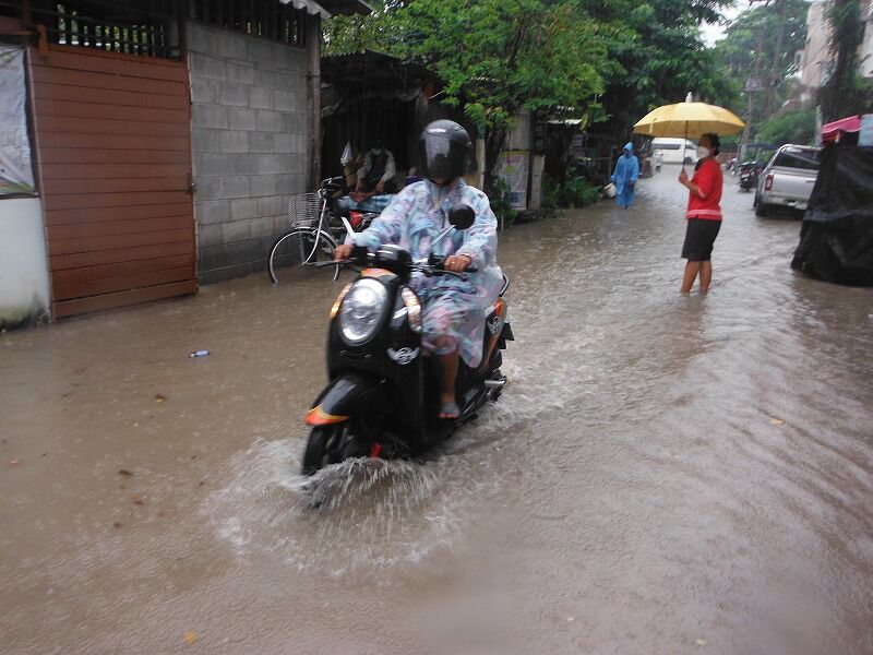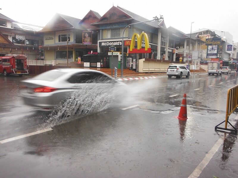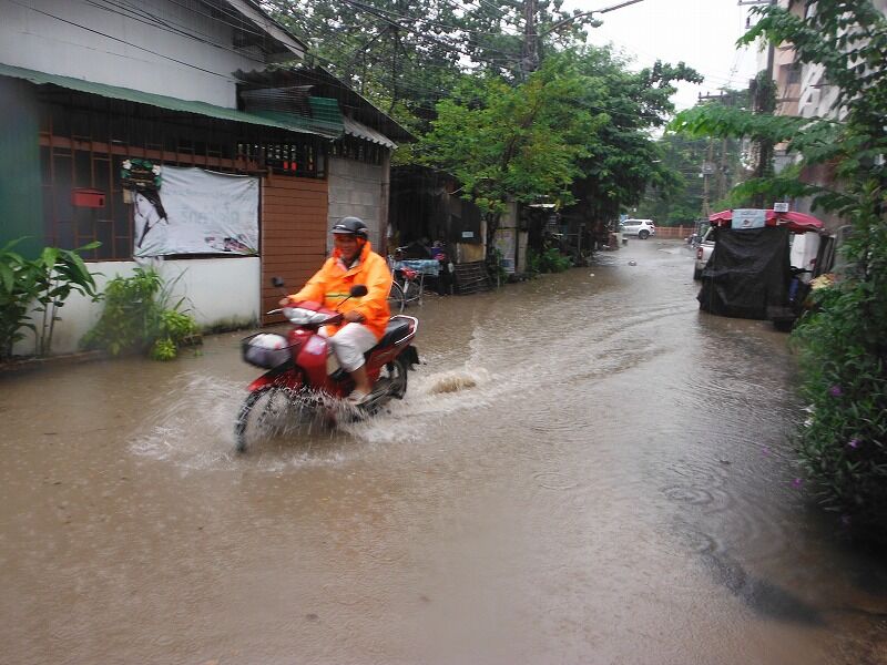 タイのメーホンソン県にある低気圧の移動により、チェンマイも先週の金曜日(20日)と土曜日(21日)に断続的に大雨が降りました。その影響を受けて、チェンマイの低い地域は排水インフラが不十分なために浸水がよく発生します。