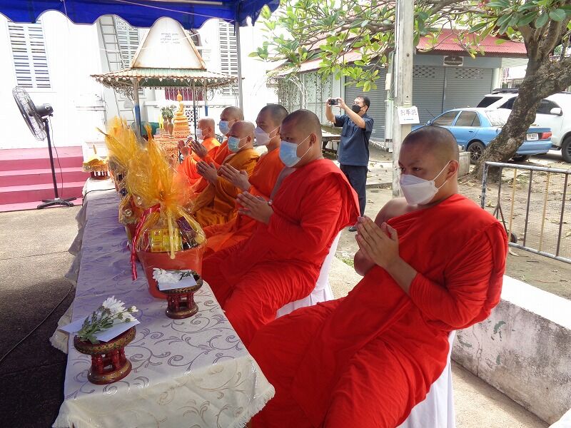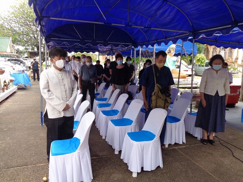 ワット・ムーンサーンの僧侶が戦没者の冥福を祈っています。その間、参列者は合掌をしていました。