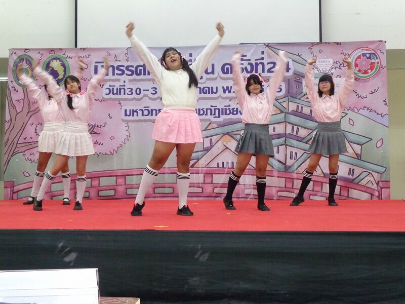 この『日本祭』は、チェンマイ・ラチャパット大学と在チェンマイ総領事館の共催によるイベントです。同大学日本語学科の学生が中心となり,地元高校生を対象にした日本に関するクイズや日本語に関するコンテストのほか,会場では茶道、書道、囲碁、折り紙、ふろしきなどの日本の伝統文化を紹介する体験コーナーもあります。また、ステージの上ではカバーダンスやコスプレのパフォーマンスも繰り広げられます。タイ人の皆さんに日本文化を紹介する楽しいイベントです。