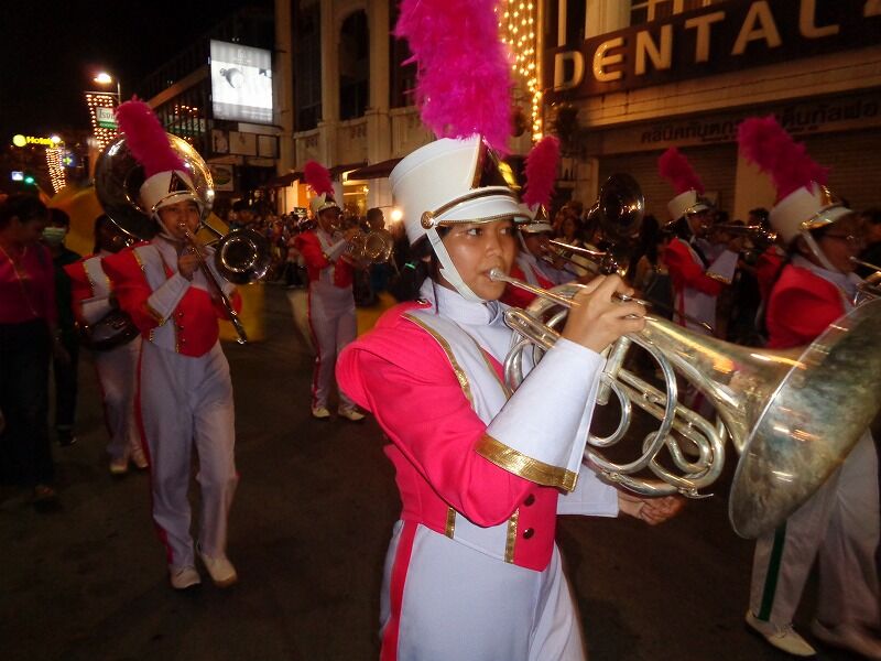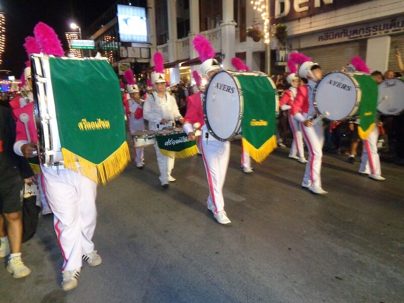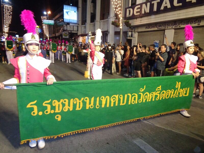 最初はナイトバザールの南側にあるワット・シードーンチャイ学校のバンド演奏でスタートしました。