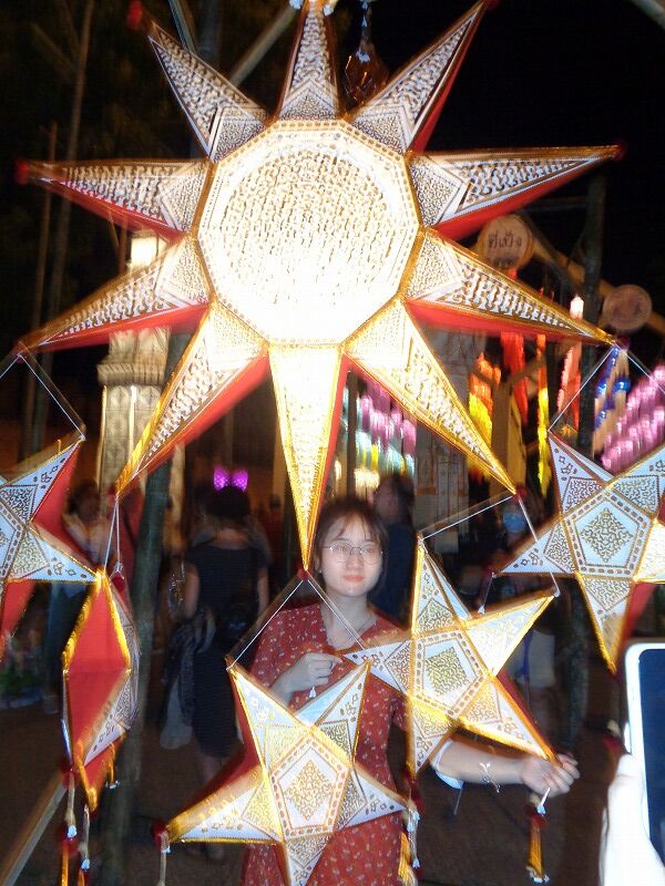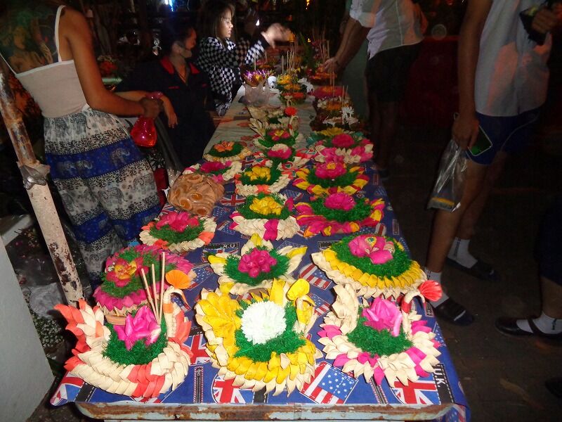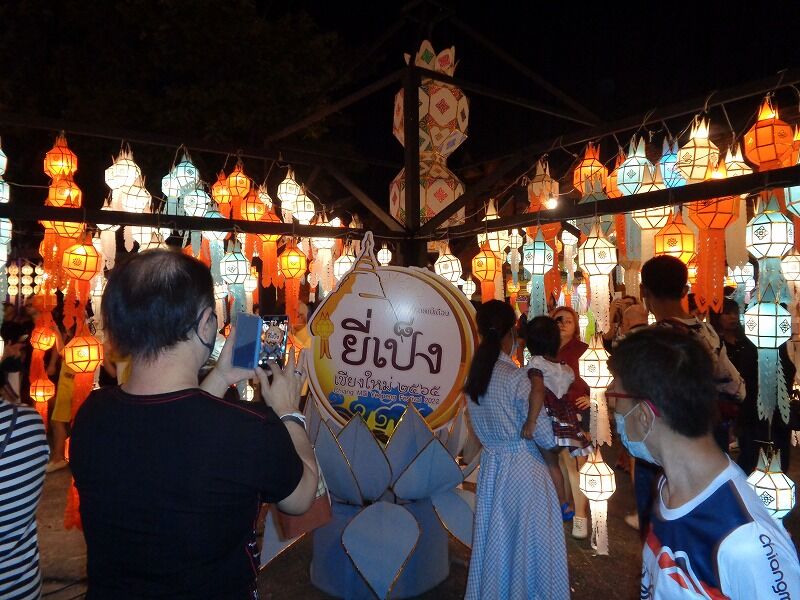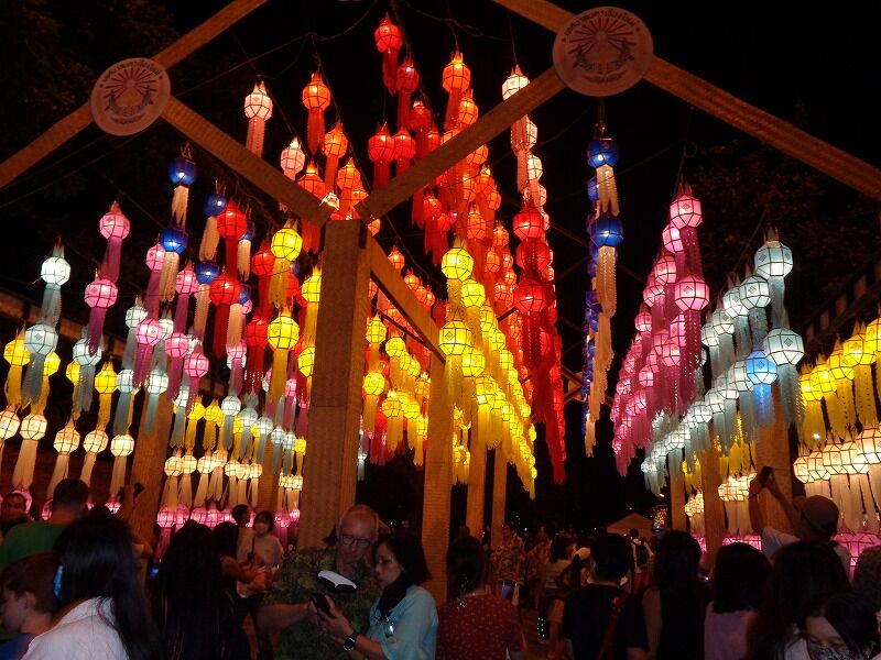 タイでは陰暦12月の満月(今年は11月8日)に『ローイクラトン』が行なわれ、川の恵みをもたらす女神に感謝と謝罪の気持ちを込めて、バナナの茎や葉で作った灯籠(クラトン)を川に流します。お祭り好きなチェンマイでは、イーペン祭りと呼ばれ、今年は11月7日から9日までの3日間、様々なイベントが開かれていました。