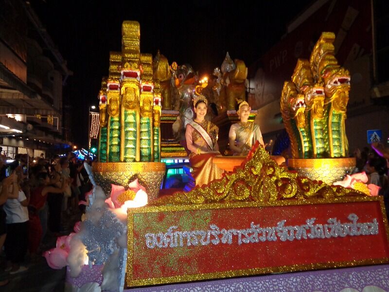 今年のチェンマイのローイクラトン祭りは、7日から9日までの3日間開かれました。その間、各地で様々なイベントが行われ、このお祭りの最大のイベントである『大灯籠山車パレード』が最終日(9日)の夜に行なわれました。
