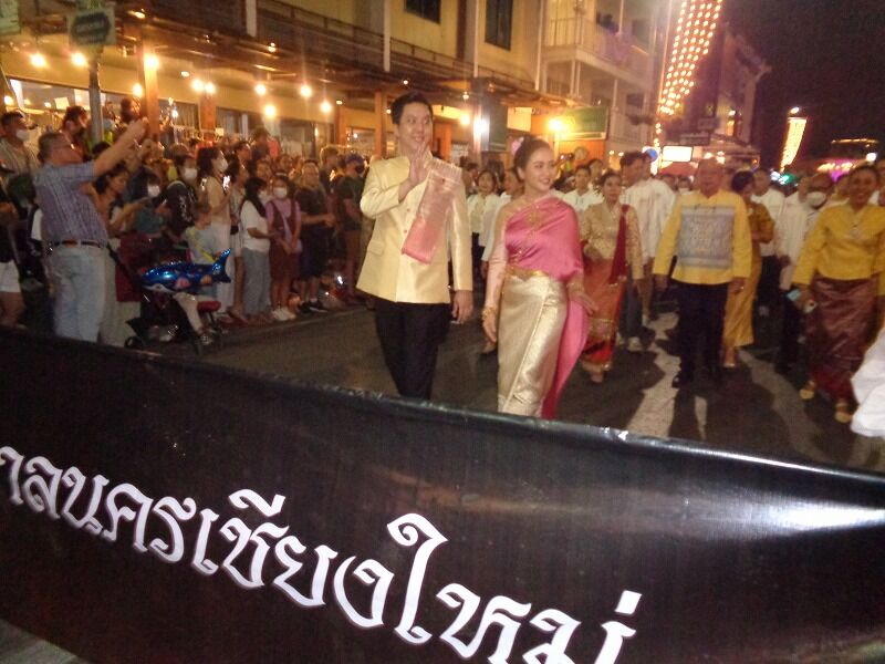 最初のパレードは『チェンマイ市』のパレードです。イケメンのチェンマイ市長です。