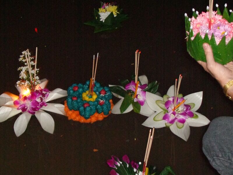 ピン川では、たくさんのクラトン(灯籠)が流れていました。