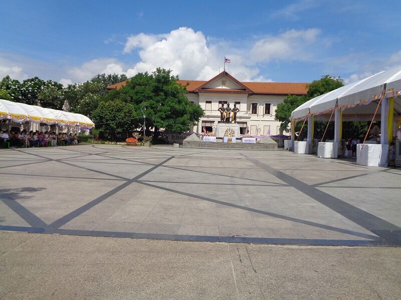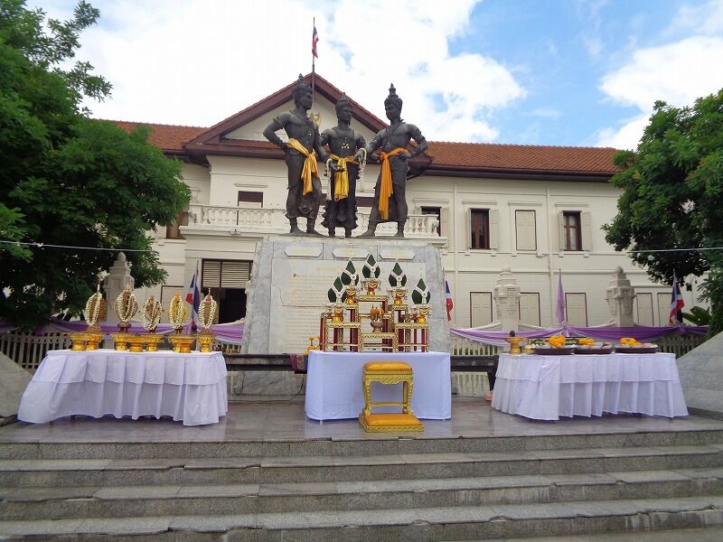 8日(木)の午前中、チェンマイの平穏を祈願する儀式が旧市街の10ヶ所において行われ、私は3人の王様像広場へ行きました。その広場には大ぜいの人が儀式に参列していました。