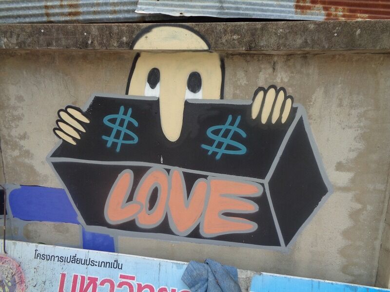 たくさんのキレイな旗の中には、タンブン(寄進)のお金(お札)が入っています。
