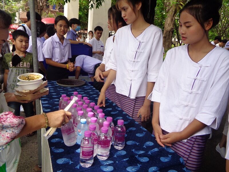 ソンクラーン祭り最終日(16日)の午後からは、チェンマイ県の各郡(日本の市町村)の代表などがパレードをして、知事公邸を訪問し、知事にお花や特産品を献上する行事が行われました。その行事は昔、ランナー王国時代の王様に新年の挨拶として、農民たちが農産物を献上したのが事の始まりでした。