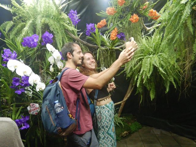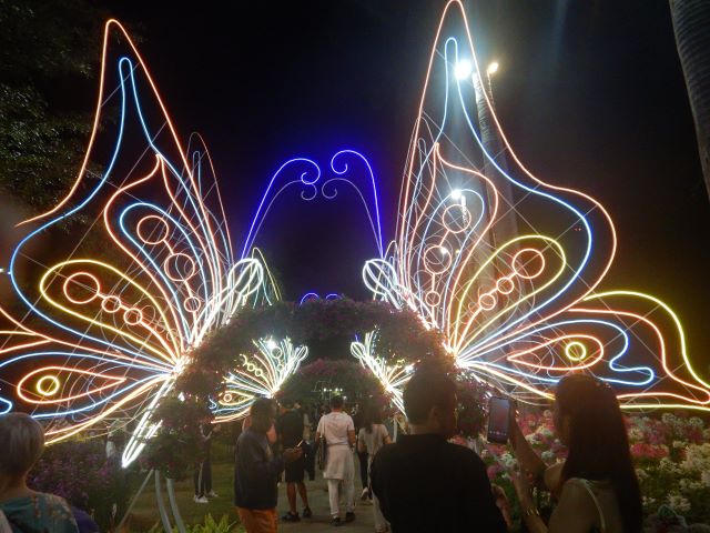 チェンマイの花祭りは、たくさんの綺麗な花が咲く、2月の初旬に毎年開催されているお祭りです。今年は2月2日から4日までの3日間開かれました。私はその初日(2日)の夜、花の展示会をしているプアックハット公園へ行きました。