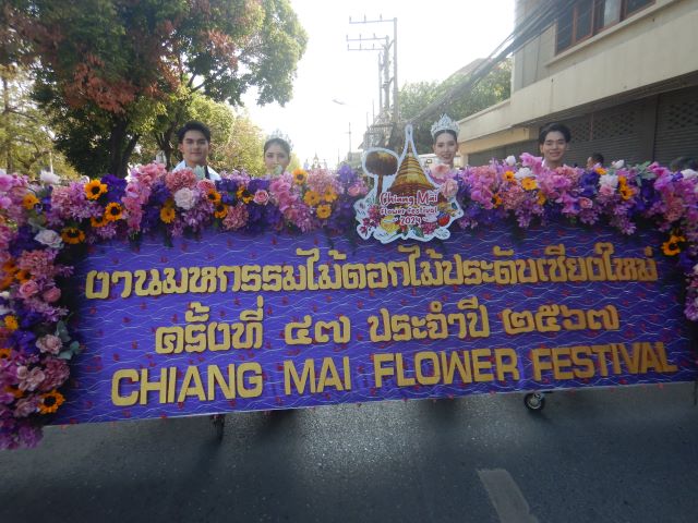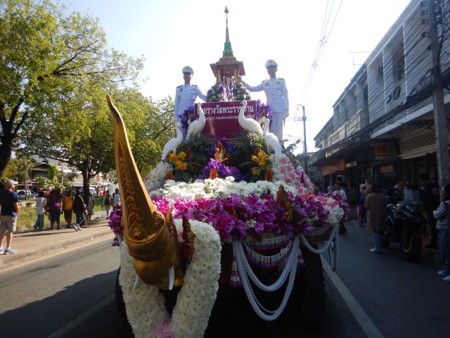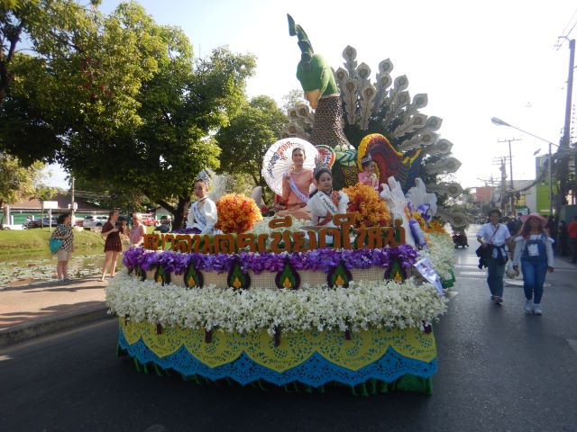 チェンマイ花祭りの2日目3日(土)の午前中は、盛大に華麗な花山車パレードが行なわれました。