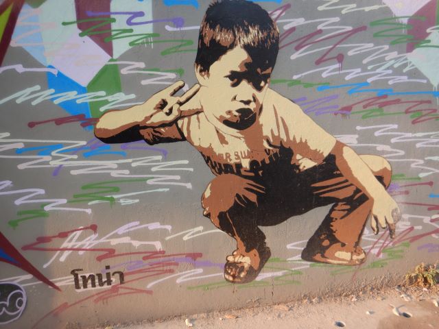 チェンマイの路上にある『面白い壁絵』