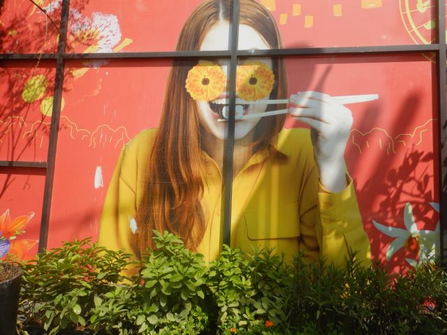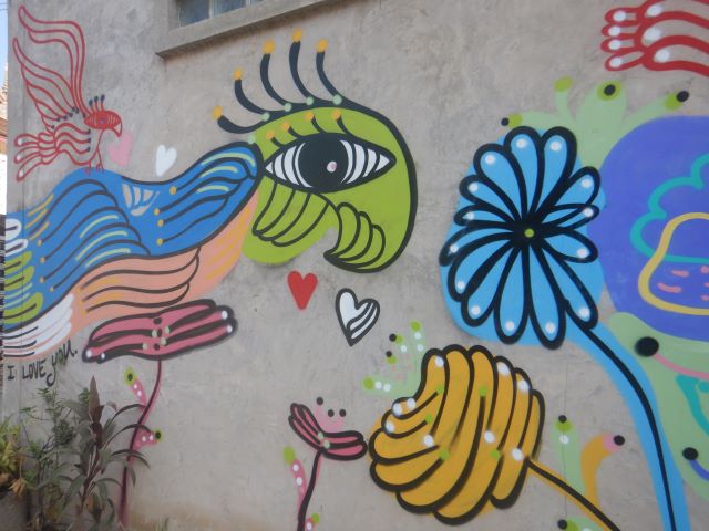 ボーサン村の商店街には、たくさんのカラフルな美しい傘が飾り付けされていました。