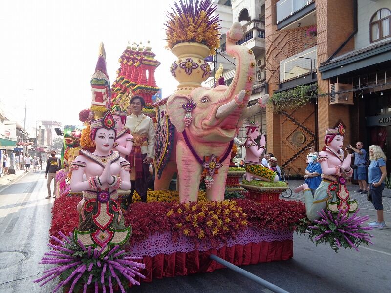 ドリアン光さん、チェンマイの三大祭りのひとつ『花祭り』は、見応えのある素晴らしいお祭りです。今年も世界中から大ぜいの観光客が訪れていました。