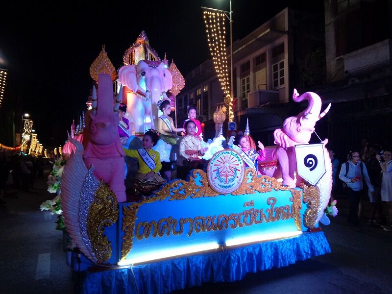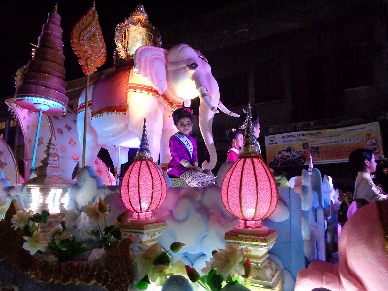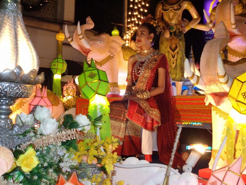今年のチェンマイのローイクラトン祭りは、10日から12日までの3日間開かれました。その間、各地で様々なイベントが行われ、このお祭りの最大のイベントである『大灯籠山車パレード』が最終日(12日)の夜に行なわれました。