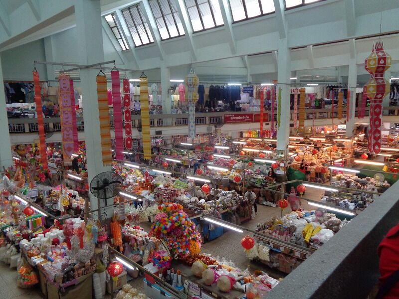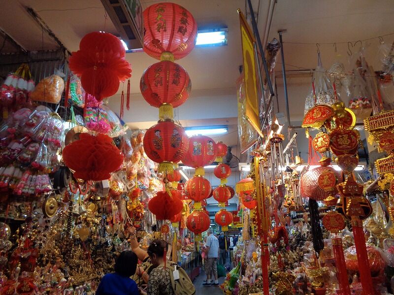 『ワロロット市場』も中国の赤い提灯が飾りつけされていました。