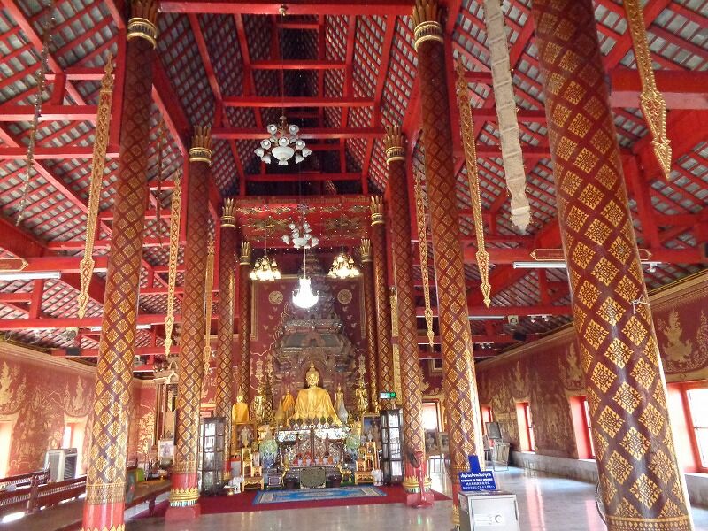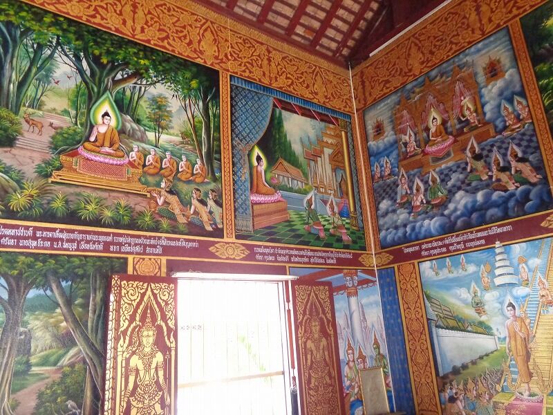 大本堂内部の壁には、メンラーイ王時代の様子が描かれています。